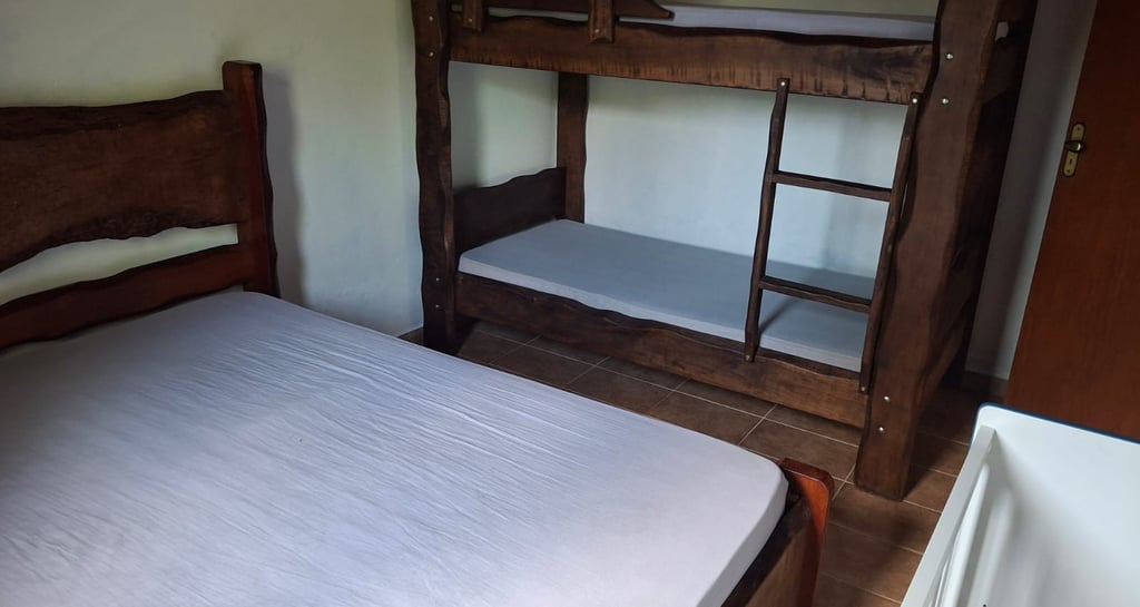 Acomodamos até 12 pessoas, com 3 quartos confortáveis, equipados com camas e beliches.