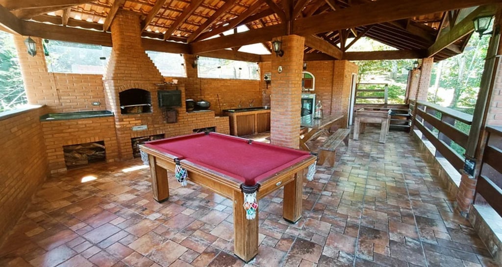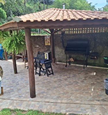 Espaço gourmet equipado com churrasqueira, forno e fogão a lenha para momentos inesquecíveis.